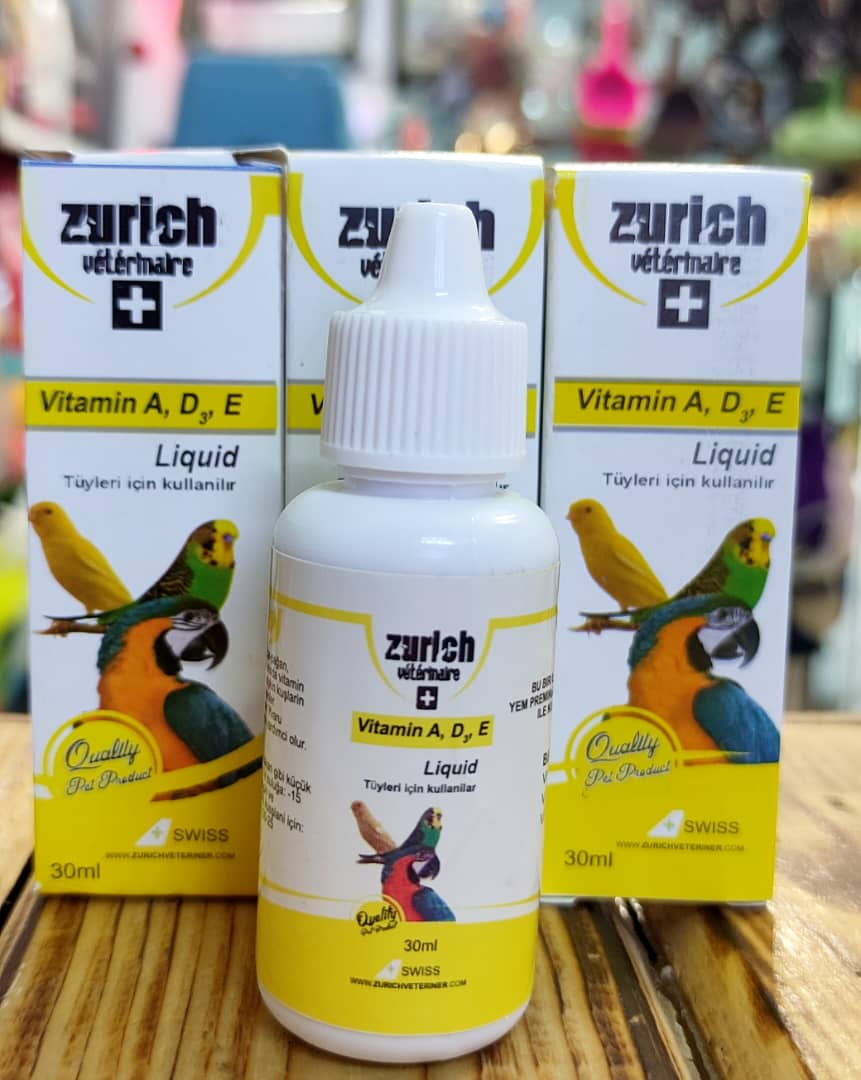 قطره ویتامین AD3E (تقویت نطفه و باروری پرندگان) برند زوریخ ۳۰ میلی لیتر