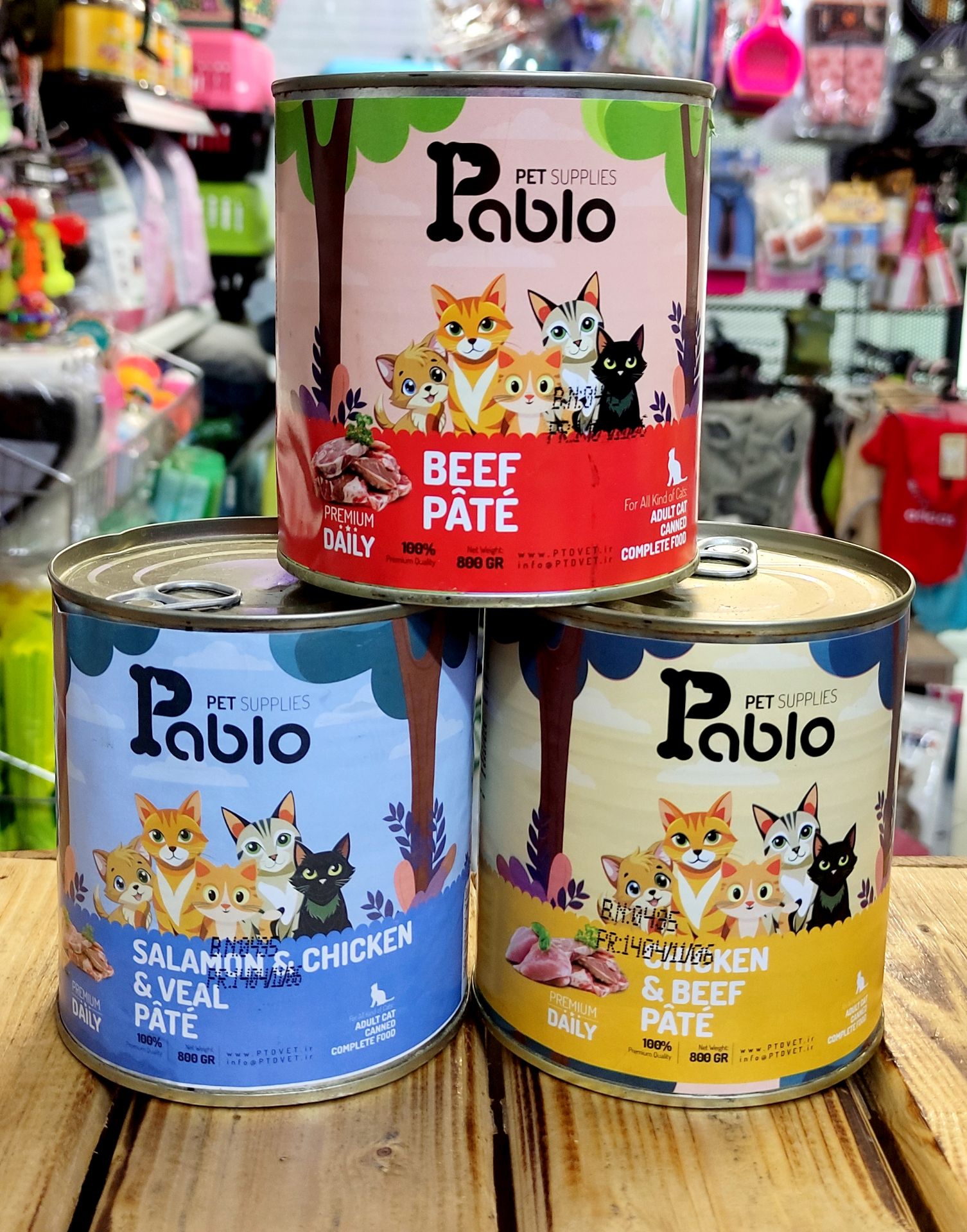 کنسرو پته گربه بالغ برند پابلو ۸۰۰ گرمی در سه طعم متنوع