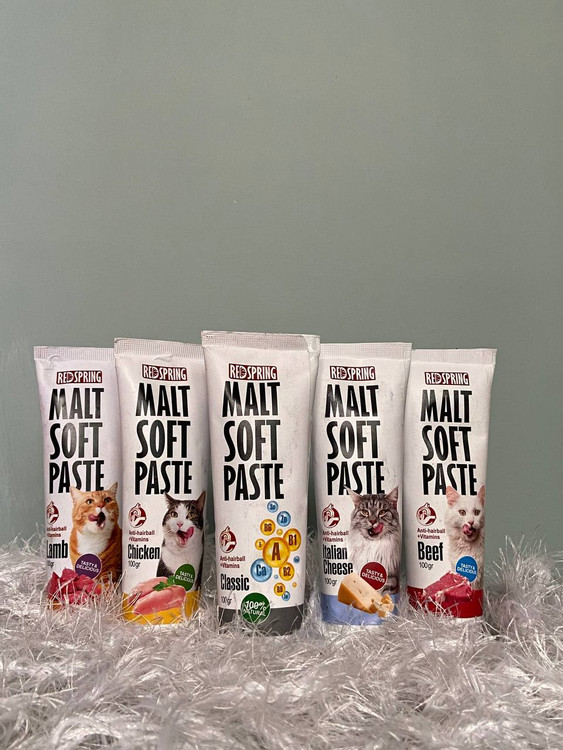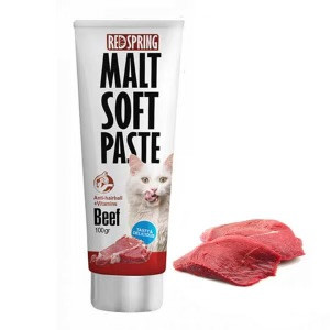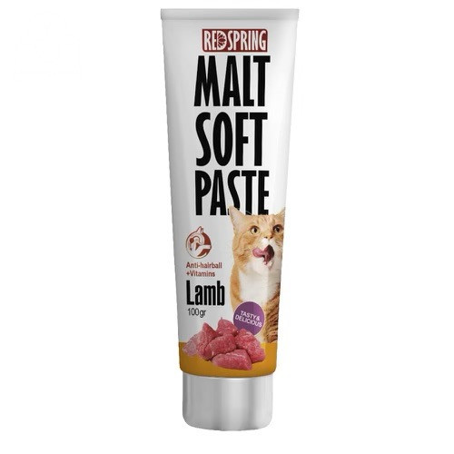 مالت با طعم بره رد اسپرینگ برای گربه Red Spring Malt Paste with Lamb یک خوراکی خوشمزه است که به جلوگیری از تشکیل گلوله های مو کمک می کند. گربهها هر بار که خود را لیس می زنند و تمیز میکنند موها را می بلعند و این خمیر خوش طعم به دفع طبیعی مو و گلولههای مو کمک میکند.