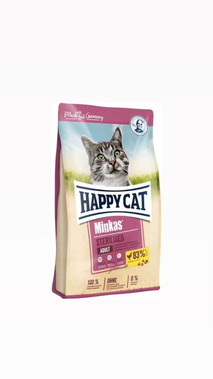 غذای گربه بالغ عقیم شده مینکاس هپی کت، یک رژیم غذایی مطلوب با مقادیر کم چربی و مناسب برای گربه های بالغ و عقیم است. پروتئین های حیوانی حاصل از مرغ با کیفیت بالا به همراه اجزای دانه های ترد و بدون سویا از عناصر سازنده این محصول می باشد که هم بسیار لذیذ بوده و هم خوب هضم می باشد.این محصول کاملا اورجینال بوده و محصول کشور آلمان است.