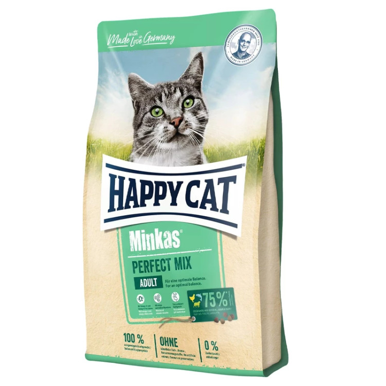 غذای خشک گربه مدل مینکاس پرفکت میکس همه ی عناصر مهم جهت یک رژیم غذایی سالم و متعادل برای تمام گربههای بالغ را دارا می باشد. در تهیهی این غذای گربه، از مواد اولیه ارگانیک و دست چین وابسته به Happy Cat استفاده شده است. پروتئین حیوانی مغذی، بدون سویا و دیگر عصاره های پروتئین گیاهی و دانه های با کیفیت بالا باعث شده محصول Minkas Perfect Mix به خوبی پذیرفته و به راحتی قابل هضم باشد. بعضی از گربهها تنوع در مواد غذایی را دوست دارند. سعی کنید دو یا سه نوع از محصولات هپی کت را با هم مخلوط کرده و به گربه خود بدهید. به این ترتیب گربه شما از هر کام این وعده غذایی لذیذ متنوع لذت می برد.