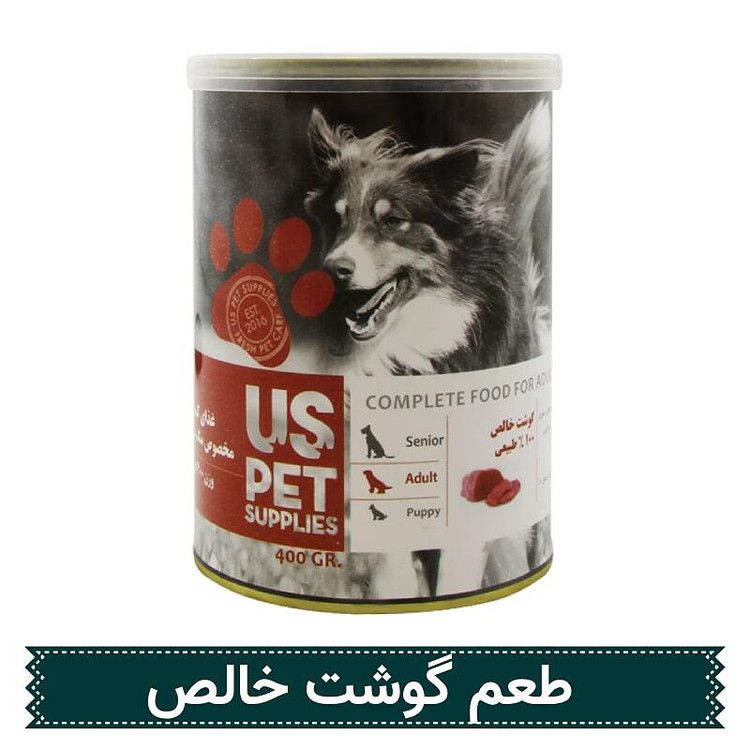 - کنسرو غذای سگ یو اس پت USPET طعم گوشت خالص