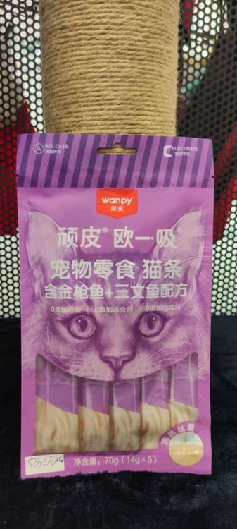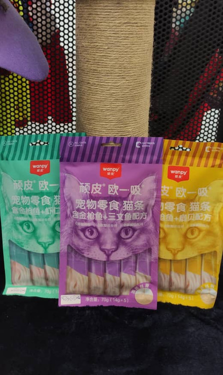 بستنی گربه برند ونپی (Wanpy) یک تشویقی و میان وعده بسیار خوشمزه و سالم برای گربه های شماست که در بسته بندی 5 عددی می باشد. بستنی Wanpy حاوی اسیدهای چرب ضروری امگا 3 و امگا 6 است و در سلامت پوست و مو و همچنین تقویت سیستم ایمنی بدن گربه ها موثر است. سازگاری بسیار خوبی با دستگاه گوارش گربه ها داشته و حاوی انواع ویتامین ها و مواد معدنی است. این بستنی گربه حاوی پروتئین های با قابلیت هضم بالا است و هضم، جذب و دفع آن به آسانی صورت می گیرد.