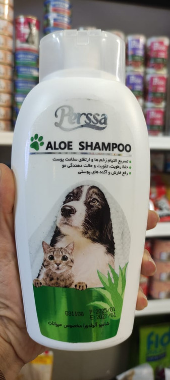 ۱)شامپو آلوئه ورا: به خوبی موهای سگ و گربه شما را تمیز می کند و با خاصیت مرطوب کنندگی موجب افزایش سلامت پوست و مو، درمان زخم ها، حساسیت و خارش پوست می گردد.