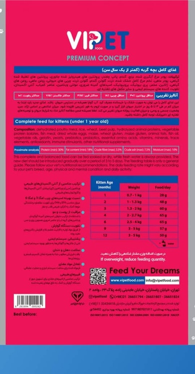 غذا خشک بچه گربه وی آی پی پت vipet