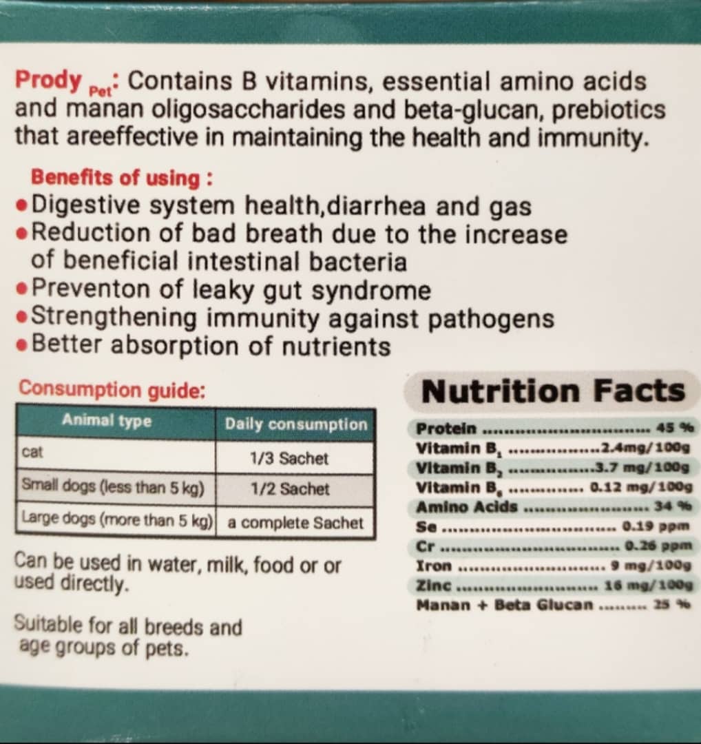 پودر پری بیوتیک برای سگ و گربه برند پرودی پت (prody pet)