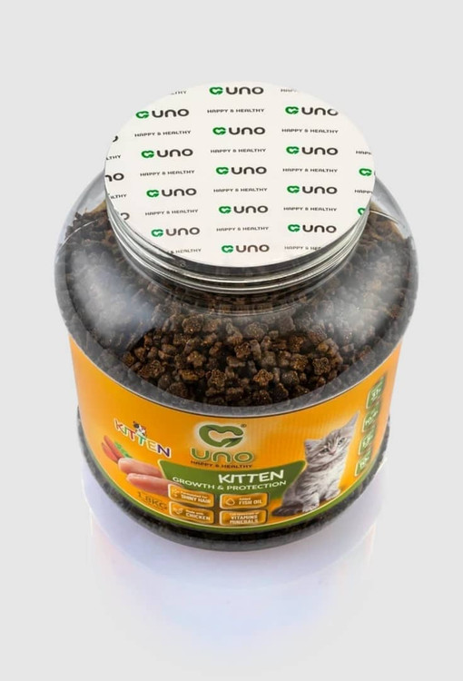 غذای سوپر پریمیوم گربه کیتن اونو UNO یک غذای بسیار خوش خوراک با 31% پروتئین خالص آزمایش شده است. کلیه محصولات اونو حاوی سری کامل ویتامین ها و مواد معدنی تامین شده از BASF آلمان، DSM هلند و Adisseo فرانسه میباشند. این غذا کلیه ویتامین ها و مواد معدنی مورد نیاز گربه شما را تامین میکند و نیازی به مکمل اضافی ندارید