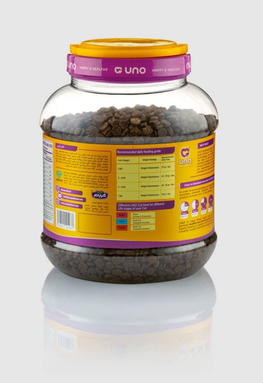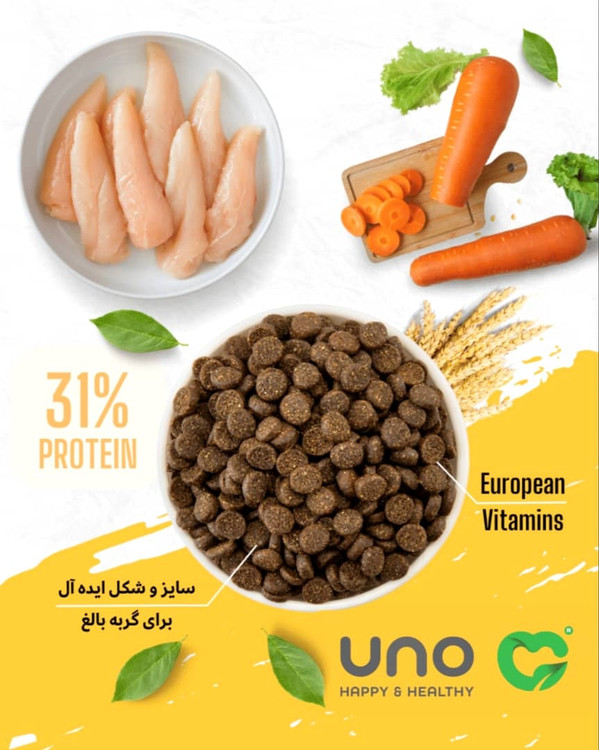غذای سوپر پریمیوم گربه بالغ اونو UNO غذایی بسیار خوش خوراک با 31% پروتئین خالص آزمایش شده است. کلیه محصولات اونو حاوی سری کامل ویتامین ها و مواد معدنی تامین شده از BASF آلمان، DSM هلند و Adisseo فرانسه میباشند. این غذا کلیه ویتامین ها و مواد معدنی مورد نیاز گربه شما را تامین میکند و نیازی به مکمل اضافی ندارید.
