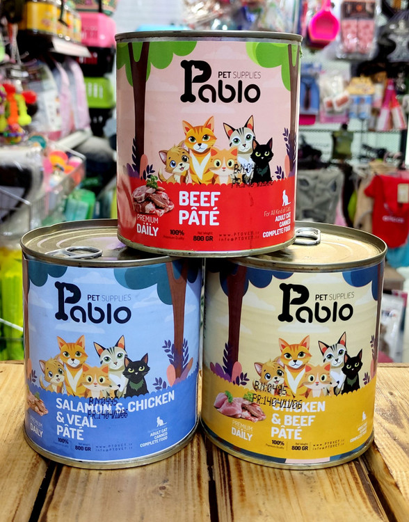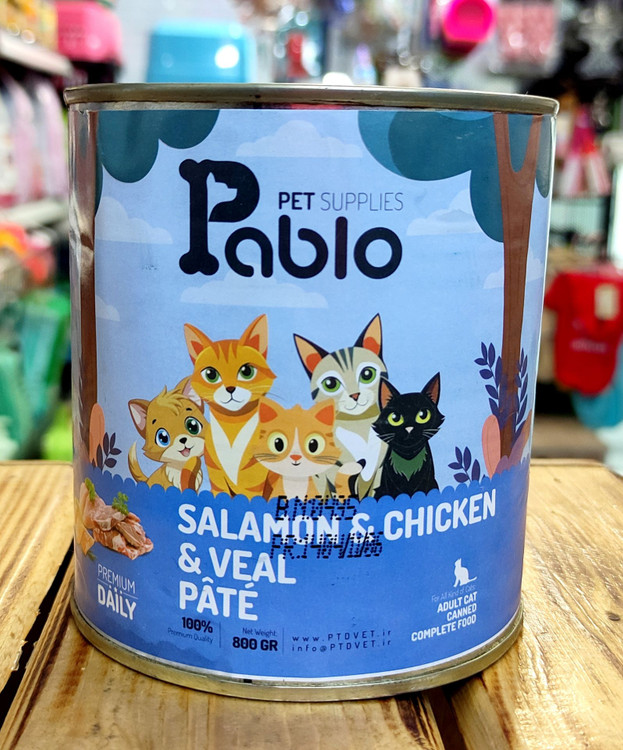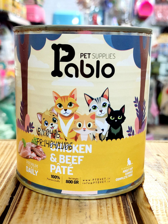 کنسرو پته گربه بالغ برند پابلو ۸۰۰ گرمی در سه طعم متنوع