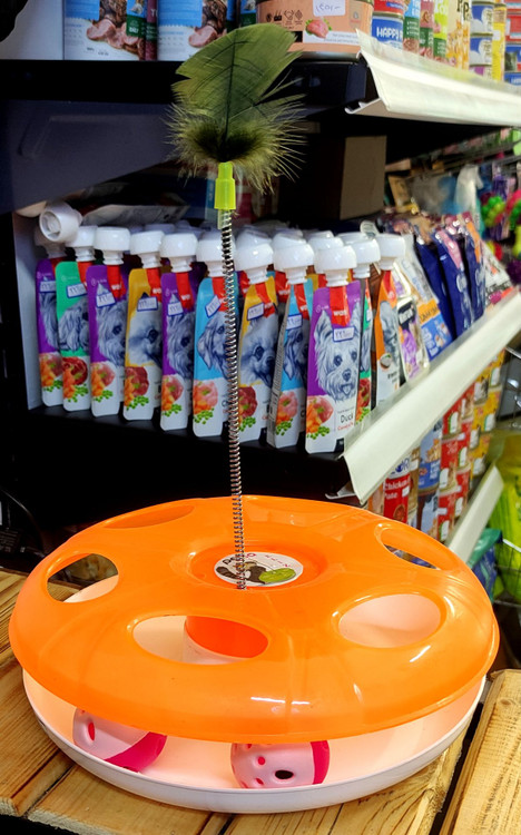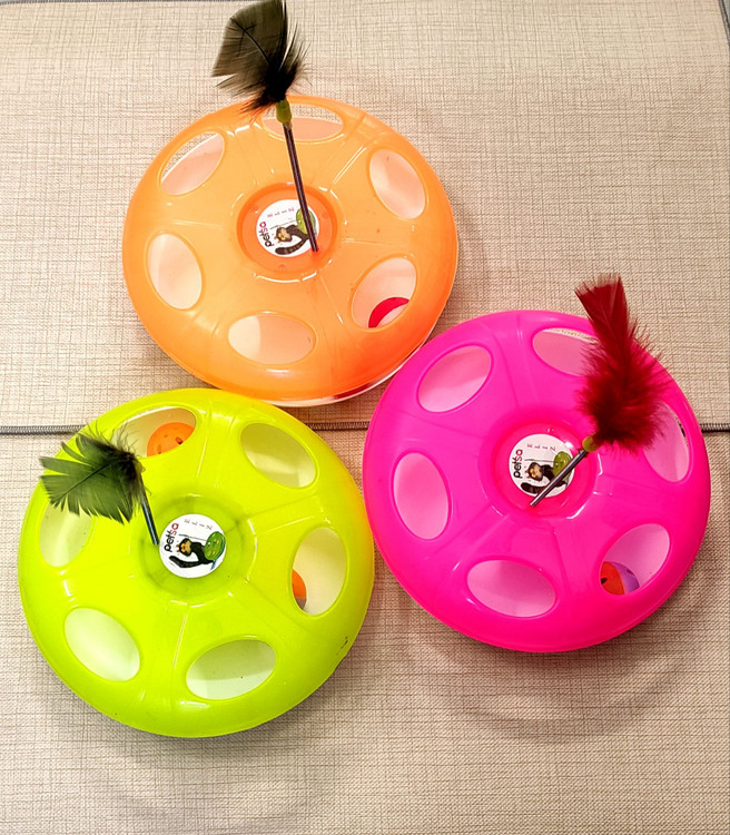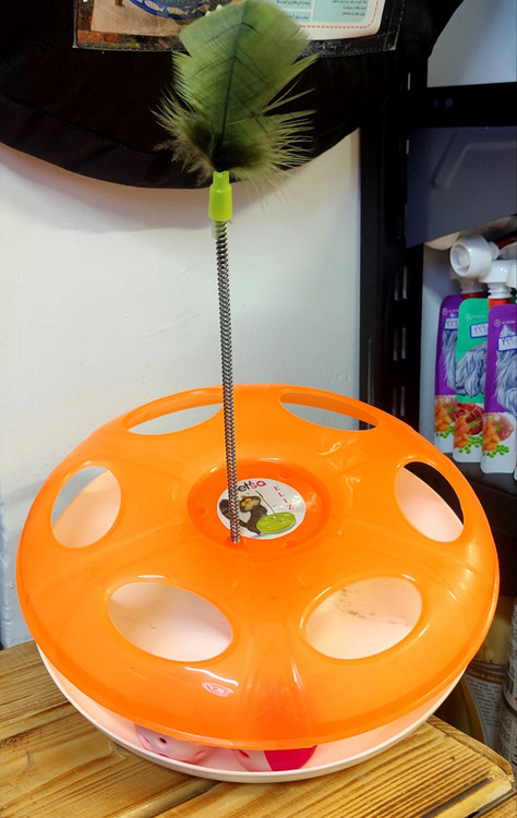 گربه میتواند توپ ها را با پنجه حرکت بده و ساعت ها بدون خستگی بازی کند در بالای برج ؛ فنر پر دار نرم و مقاوم نصب شده تا حس شکار و کنجکاوی گربه رو تحریک کند.
