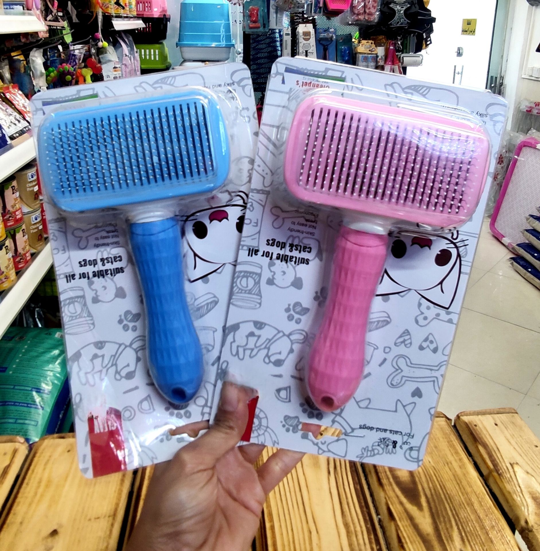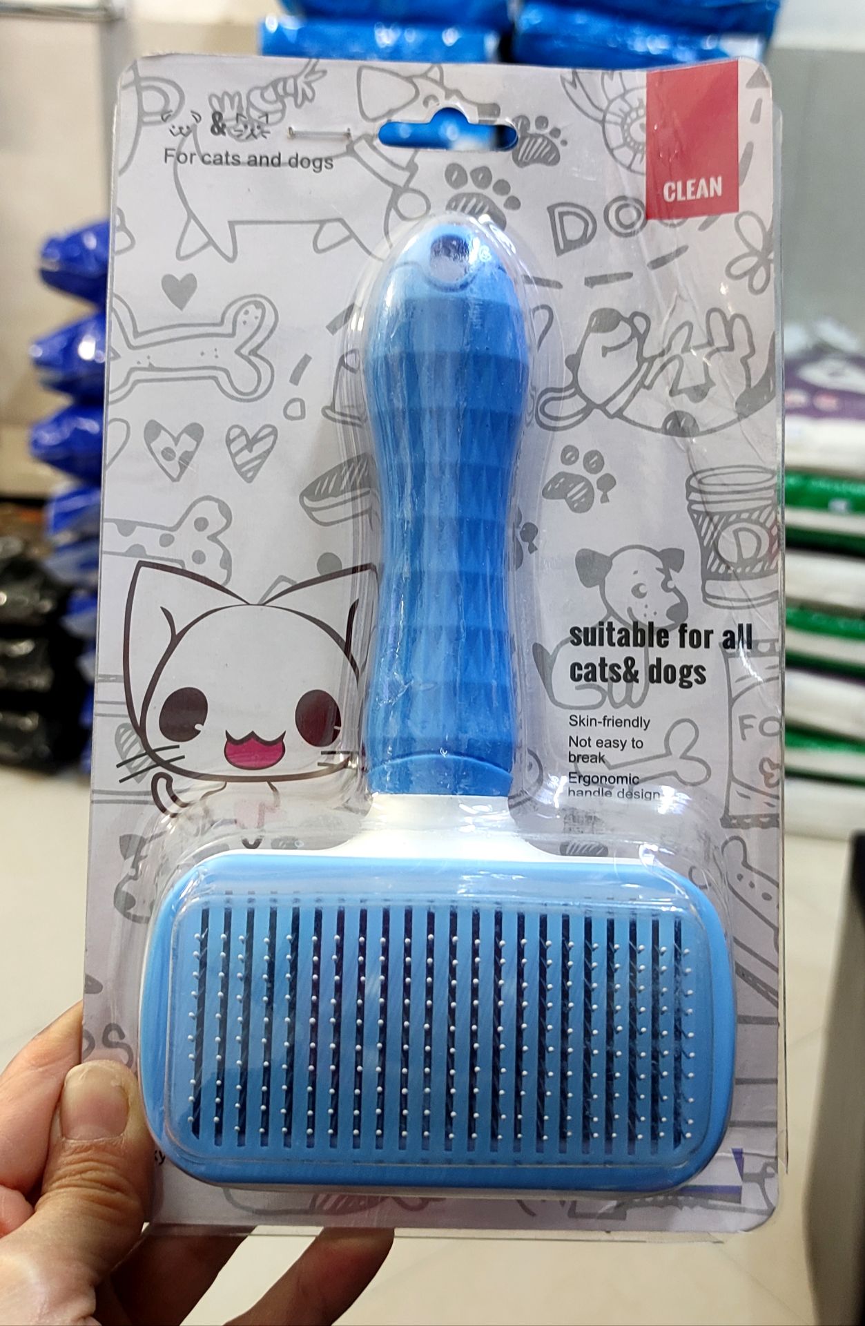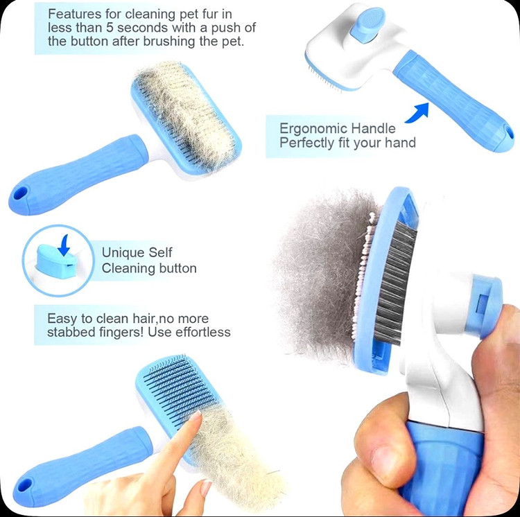 برس و شانه سگ و گربه با دکمه تخلیه مو مدل مستطیل برند clean